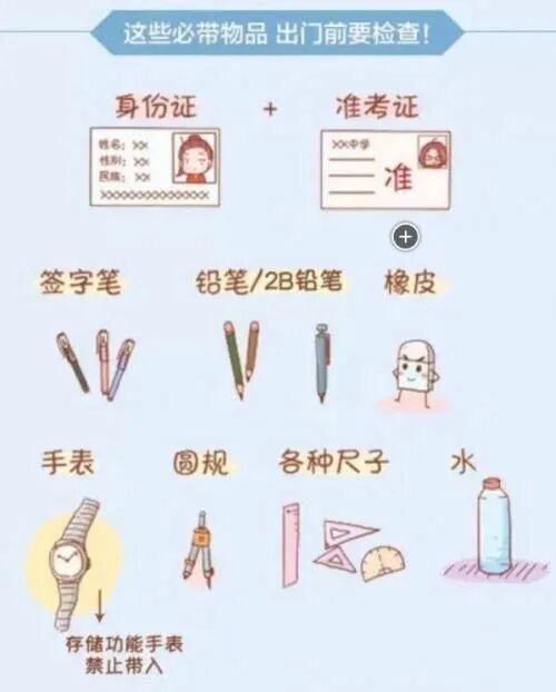 ③ 要关注考试期间天气预报,注意防暑降温,备好雨具,提前出门。